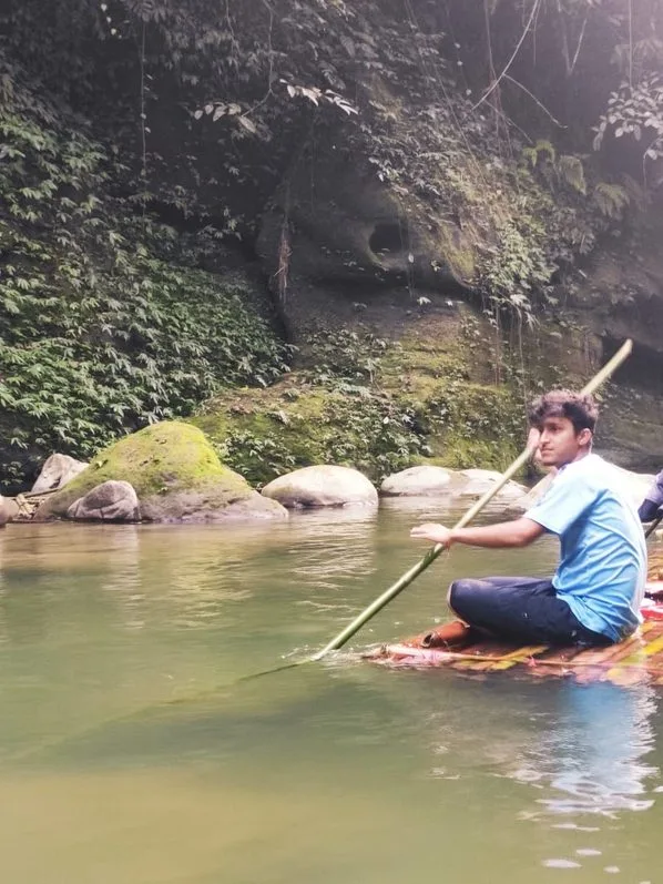 2. Rafting or boating: Khums is meant to explore it on a bamboo raft. You are sitting on a Bamboo raft, the lower part of your body Submerged in cold water, and Slowly moving forward. Sometimes the raft will get stuck on the green rocky wall by the side, sometimes the silence of the khum will be the focus of attention, and in the end, you will be captivated by the pure nature of Khum. If you are not ready to wet your dress, then you can explore the whole khum by boat. But still, I prefer the Bamboo raft for exploring khum.